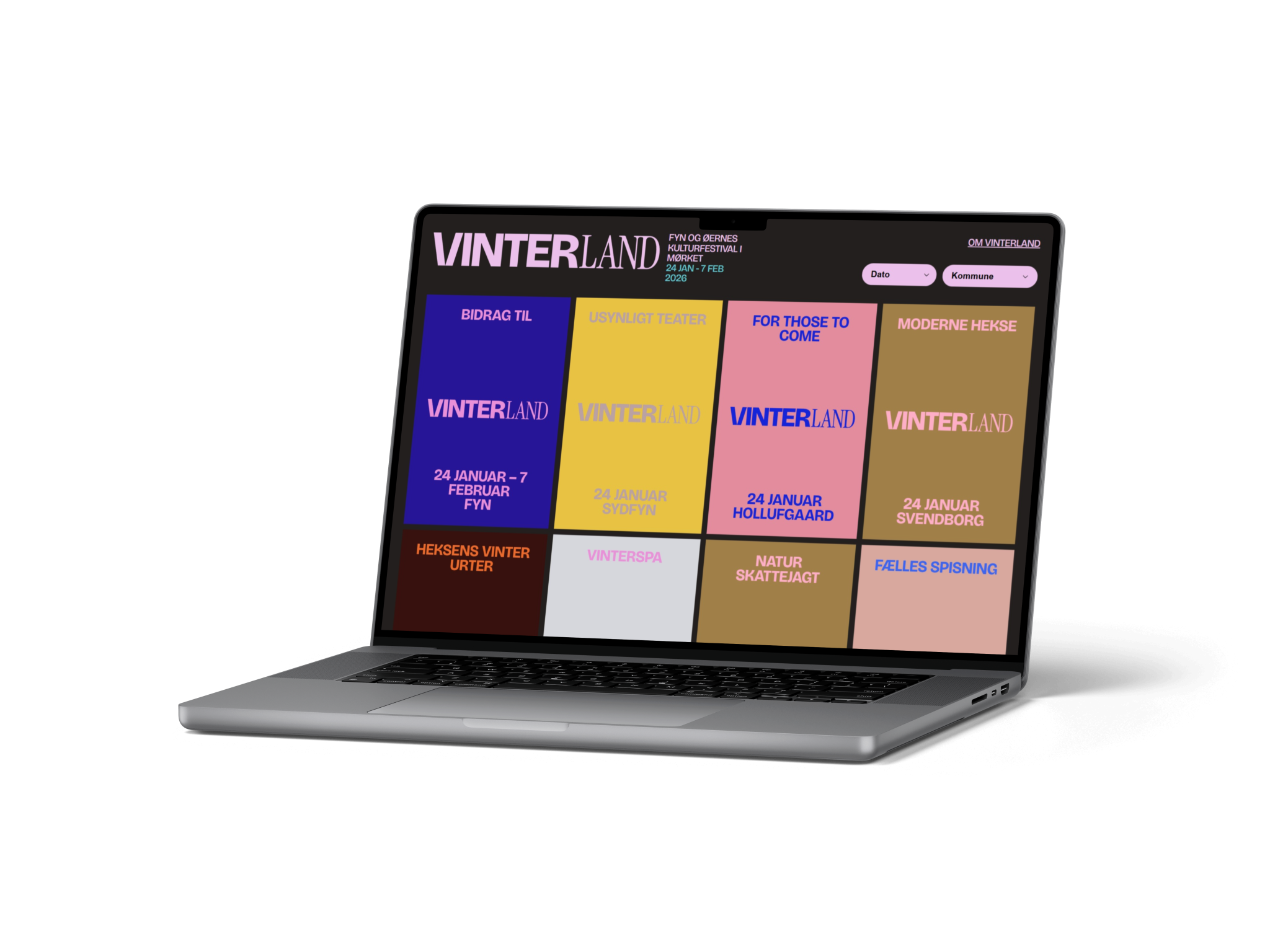 Vi har udviklet en digital opslagstavle, der samler alle Vinterlands arrangementer ét sted. Løsningen giver et hurtigt overblik over aktiviteter i de 15 dage eventet varer og gør det nemt at sortere efter både dato og kommune.